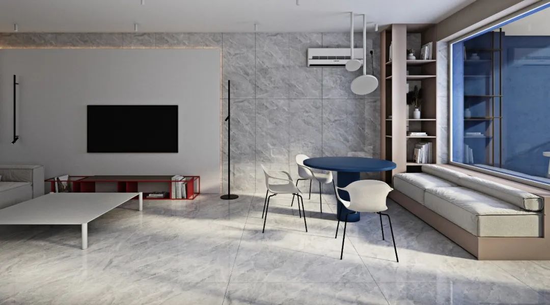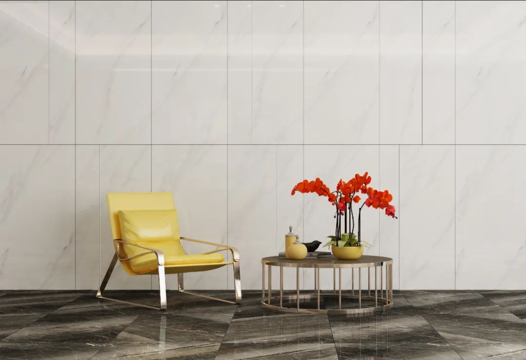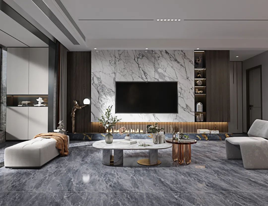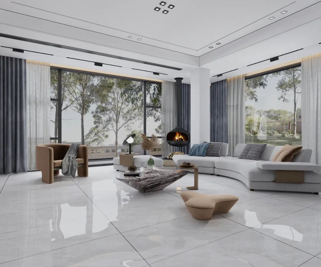 纹理似磅礴山河的克勒斯灰,无限连纹设计让视觉更连贯统一,搭配朦胧的纱帘,在动与静间唤醒家居活力。